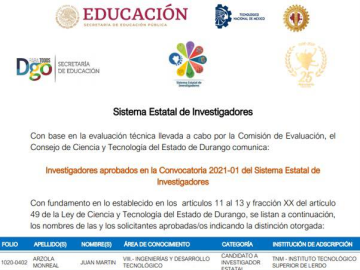 El Instituto Tecnológico Superior de Lerdo felicita a las(os) 8 nuevas(os) Docentes Investigadoras(es) integrantes del Sistema Estatal de Investigadores (SEI) apro...